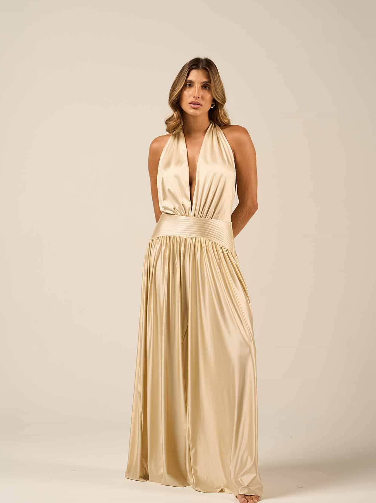 Calça Pantalona Pesponto Champanhe